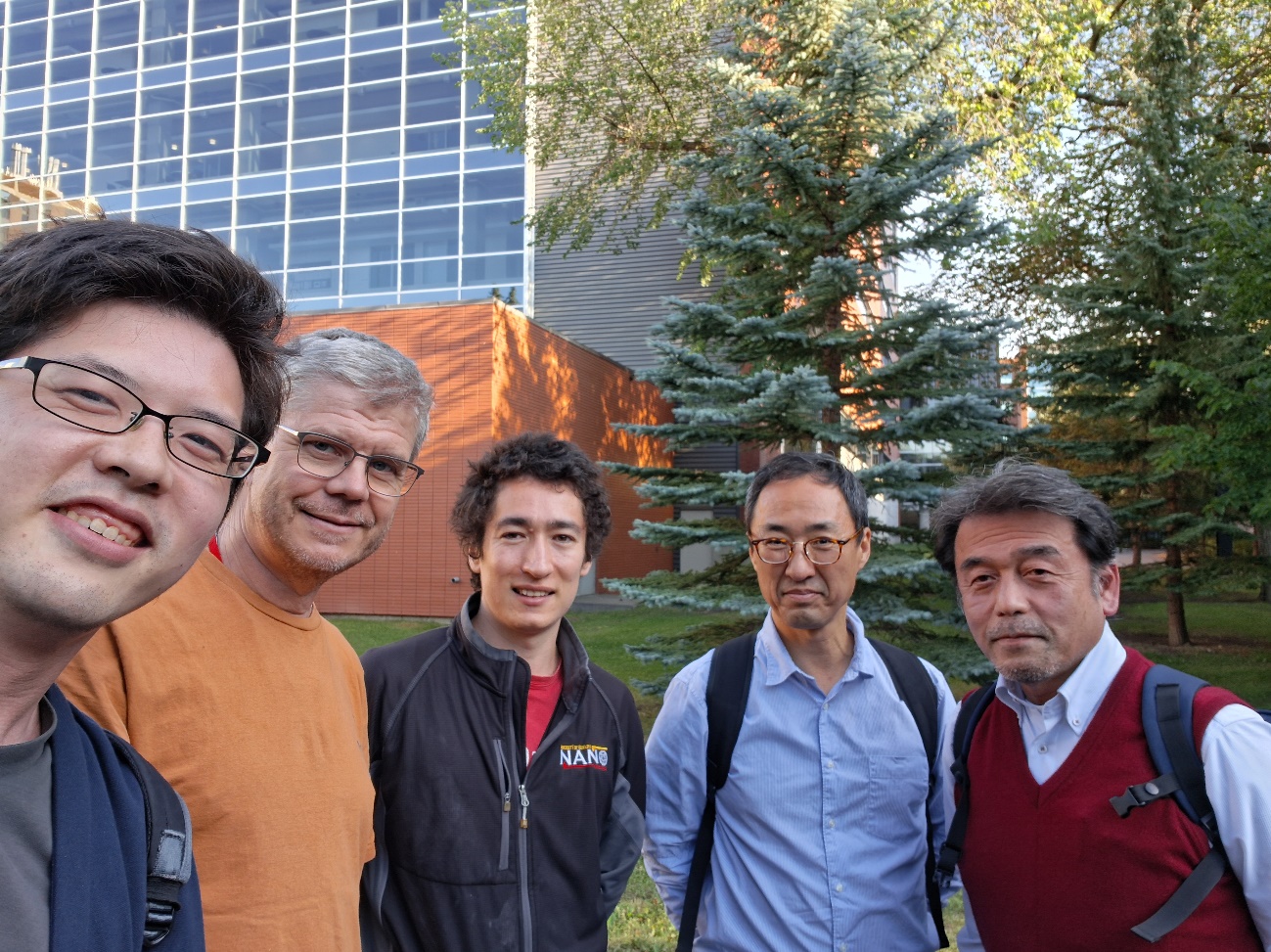 カナダ・エドモントンにて。左から著者、Marek Malac先生、Makoto Schreiber博士、岡本洋先生、原田研先生